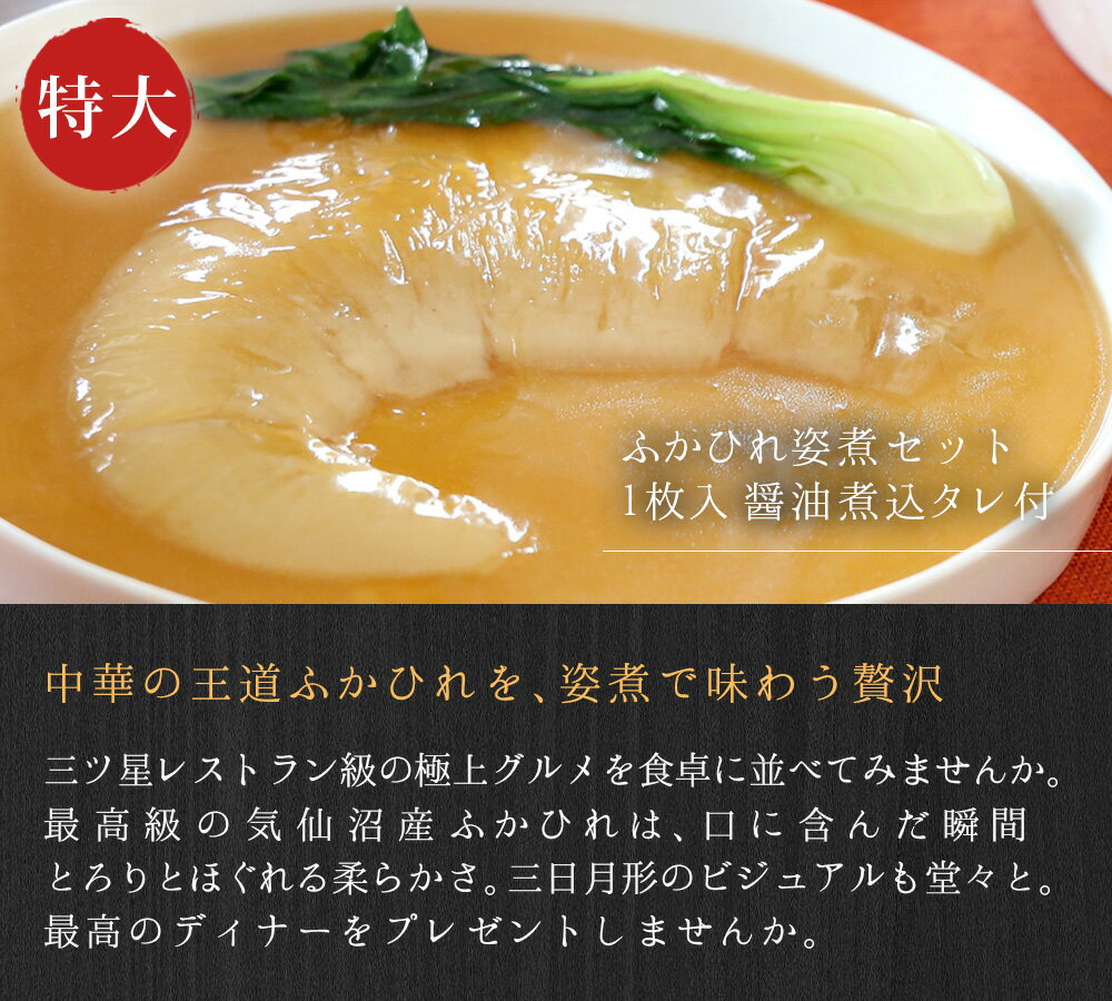 父の日 海鮮 フカヒレ姿煮 1枚 特大 120〜144g 気仙沼産 ふかひれ 三ツ星レストラン御用達 誕生日 長寿祝い ギフト 手土産 海鮮 魚 煮込みスープ付 セット 国産 グルメ プレゼント 送料無料/キャッシュレス還元 fd