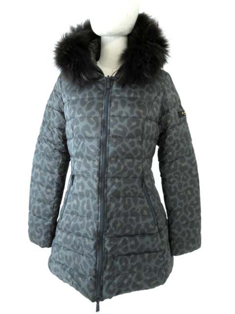 【中古】極美◎正規品 15年AW タトラス LTA15A4431 レディース ラクーンファー・フード付き リバーシブルダウンコート レオパード柄×緑灰 03